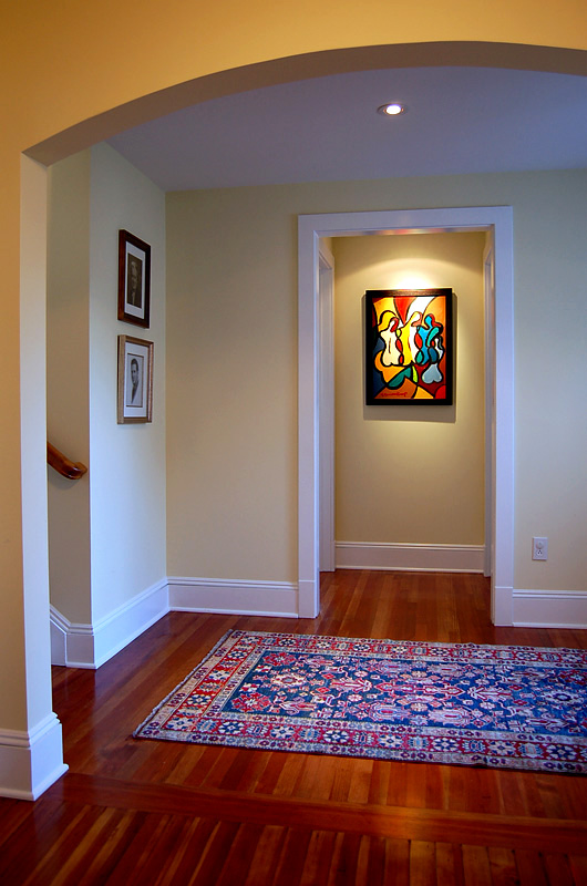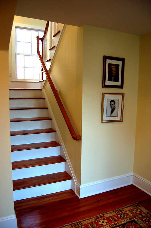 Three floors of additional living space seamlessly join the main house in this wood addition. New Hardie Plank siding miters into the existing construction. Fit and finish of the interior floors are color and width matched to provide a sense of continuity to the living spaces. The result, as you walk through the house, and up the stairs, is of exploring an extension of the original home.