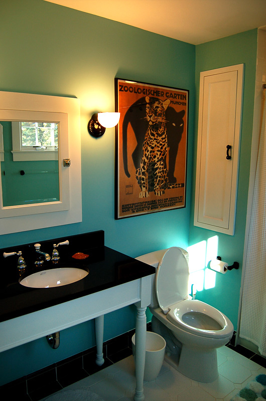 "We started this job while the owners were still living in Germany. A three story addition was built off the back of the house for a family room, two bedrooms, a bathroom, and a third floor playroom. This kitchen (above, right) is part of the existing home that we remodeled." Dave Rowe