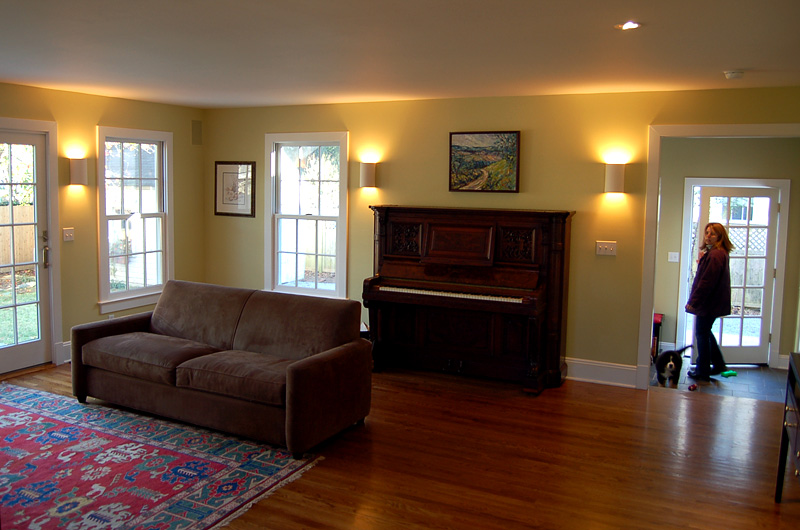 A three story wood addition blends seamlessly into the newly renovated main home, an elegant solution for a growing young family. The new structure retains the character of the original home, yet adds a more contemporary feel through expanded, open, floor plans.